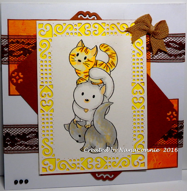 Hope you are enjoying your weekend. I'm going to post this and then go give some attention to the feline fur babies who are yammering about having been ignored while I made this card. Happy Stamping. NanaConnie
