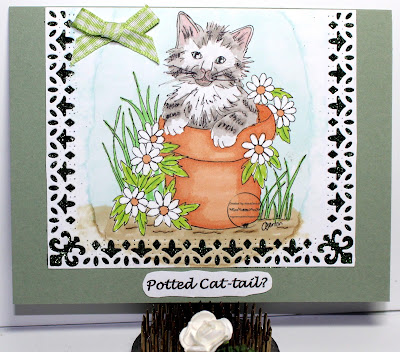 When I saw this image in the store at Createful Hearts, my own heart just melted. Our newest challenge starts today and this just seemed like a perfect autumn image for my DT card. It's called "Pumpkin Patch Kitty" and I know you're going to love it, too (even if you're not a 'crazy cat lady.') Our theme is "Anything Goes" and you can use whatever image you want to enter.