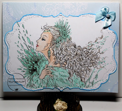 I colored the image with polychromos pencils and blended them with the blender included in the pencil set. I cut the image and the frame with stitched dies from Cottage Cutz.