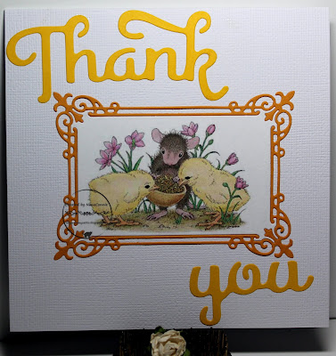I've already shared a few of my post-Christmas, Thank You, cards this month and today I have two more. This first one will most likely get used this spring or summer. The image is a stamp from House Mouse and I think it's one of the sweetest and most versatile of all the HM stamps I own.