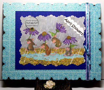 I used ProMarkers to color the image, then cut it with an Unbranded die. The three papers for the background and the ribbon were all scraps. In fact, the green polka dot piece was so small, I had to cut it in two and add the pieces so that they would show at the top and bottom of the image, giving the illusion of being one, long piece.