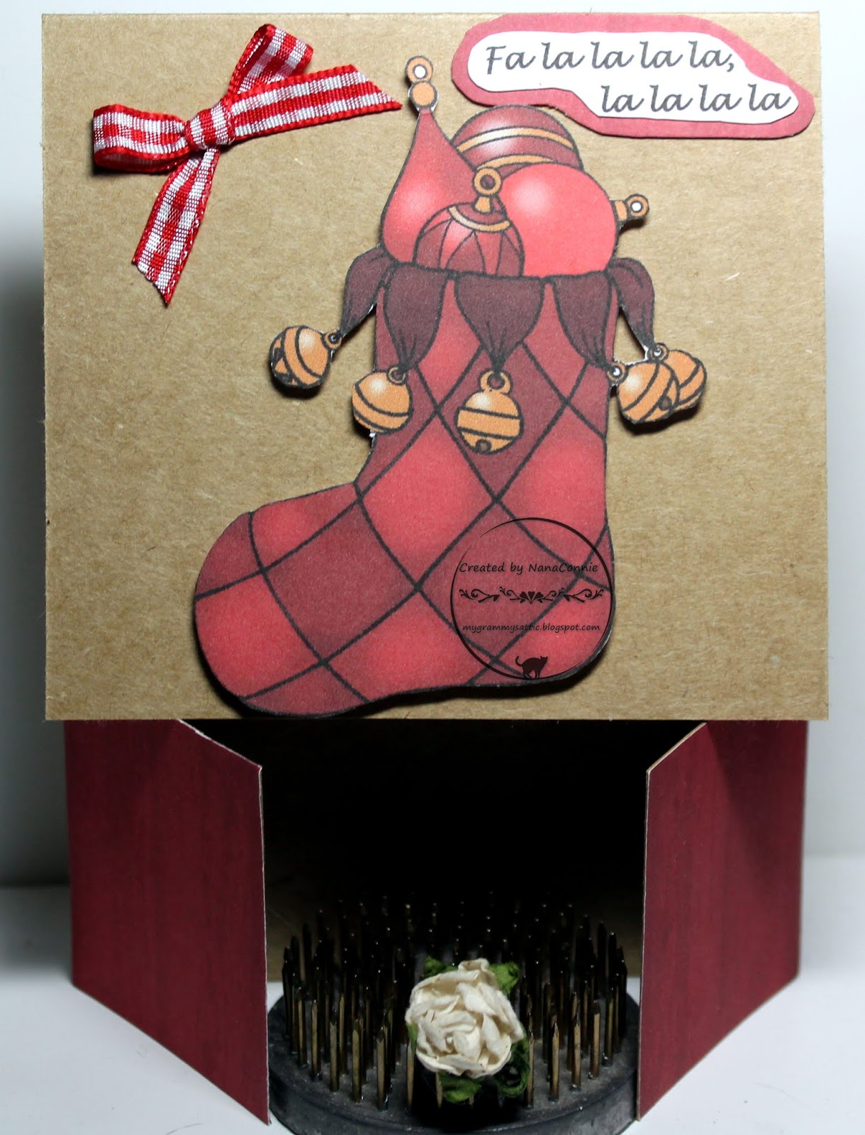 Wonderful and festive Christmas card! Your stocking with the bells is as cute as could be! No one could get away with any early peeking with those bells!