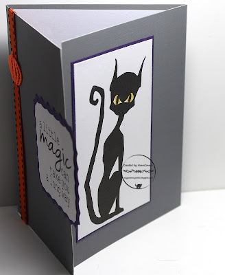 This second card was made for the recipe challenge at Crafty Chefs. That challenge has been reactivated due to the efforts of Monica of Sunshine Creativity (bless you, my friend!) who has given us a much simplified recipe this month. Only 2 ingredients: die cuts & a sentiment.
